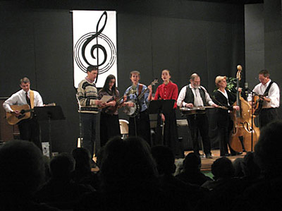 Playing music with our "band" from church for a community outreach, March 2008.